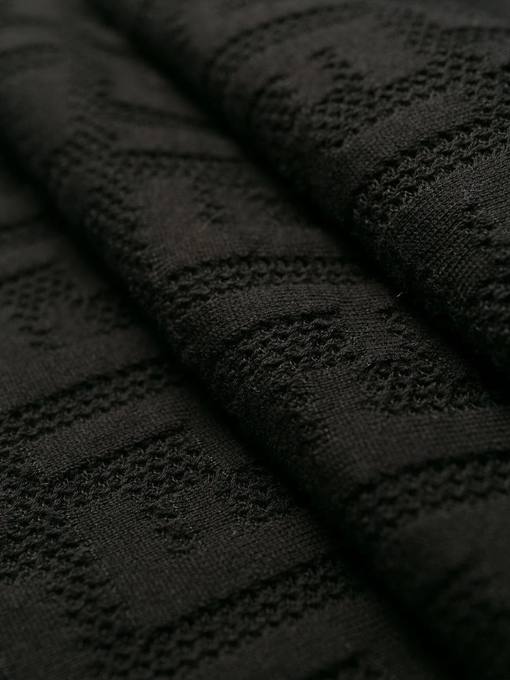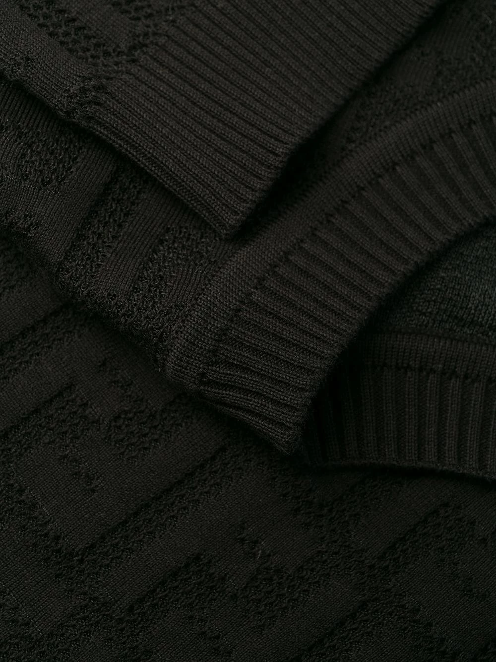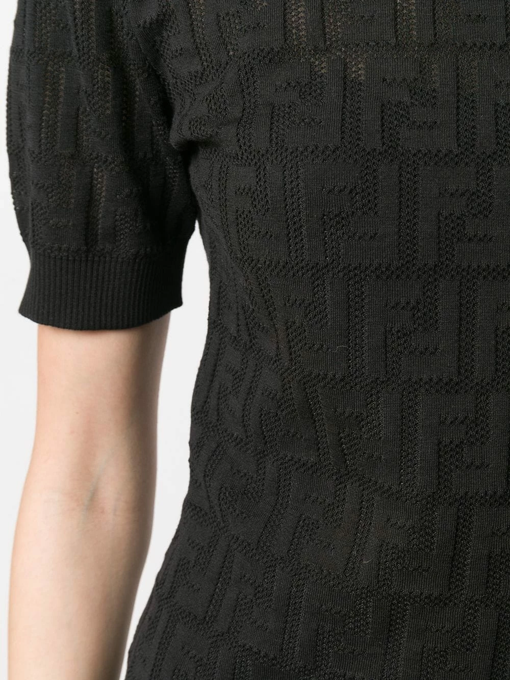 Fendi is all about sophisticated and trendsetting designs that showcase the brandβs contemporary and fashionable nature. By always offering immaculately crafted pieces with a modern twist, the brand has captured the hearts of the masses. This black cotton blend FF motif longette dress features a ribbed round neck, a fitted silhouette, a mid-calf length, a straight hem, short sleeves, and fitted cuffs.