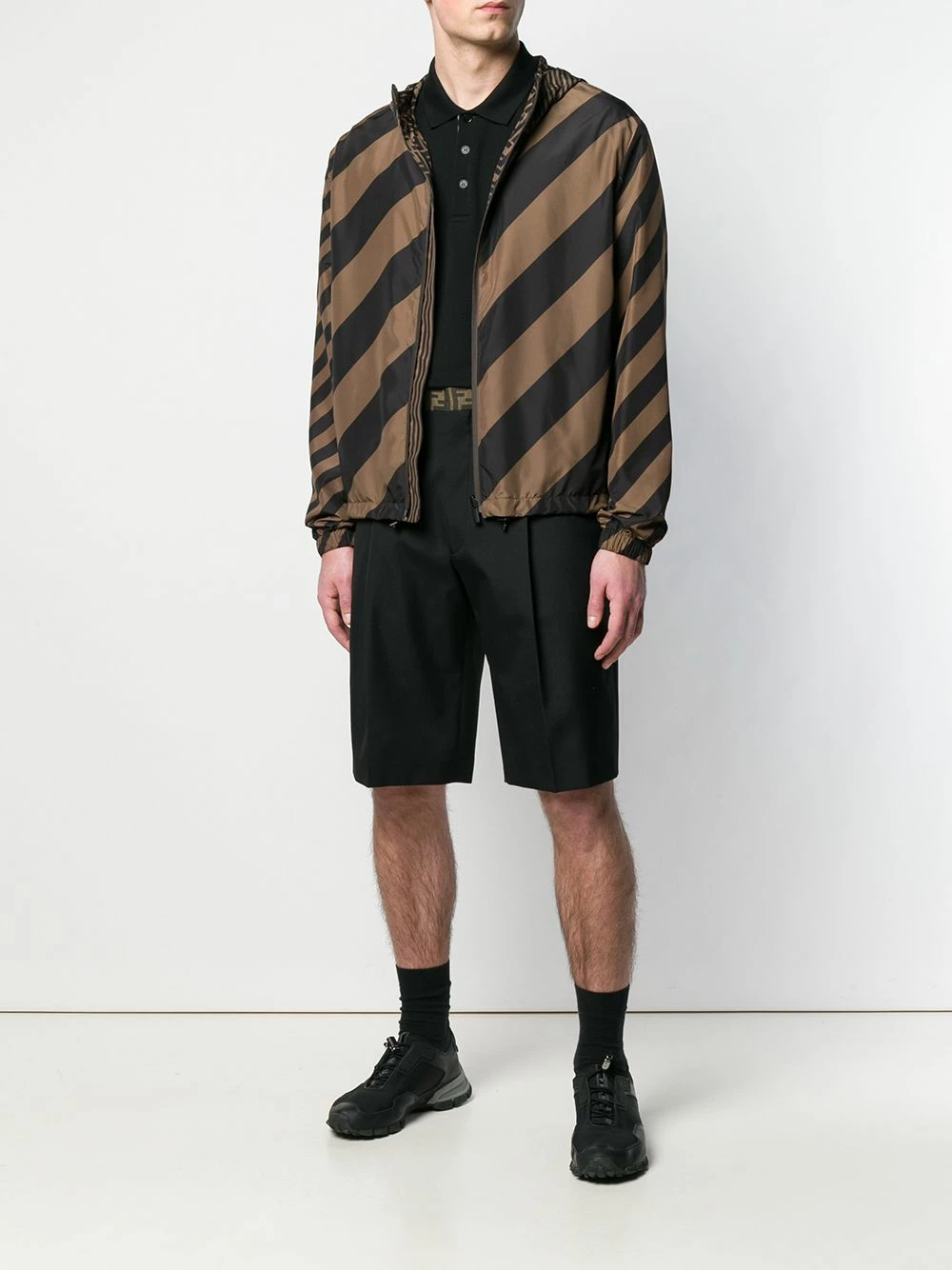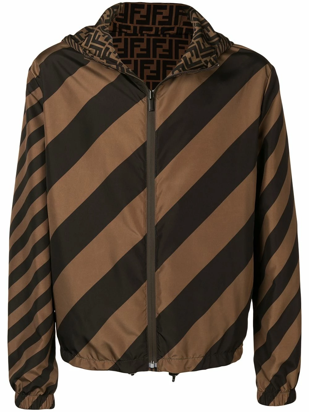 The FF logo plays a starring role in Fendiβs most recent collection. Available in various colours and fabrics, the brand has created a line that results in indulgent stunning garments. Crafted in Italy, this tonal brown reversible zipped-up jacket from Fendi features a hood, a front zip fastening, long sleeves, elasticated cuffs and a drawstring hem.