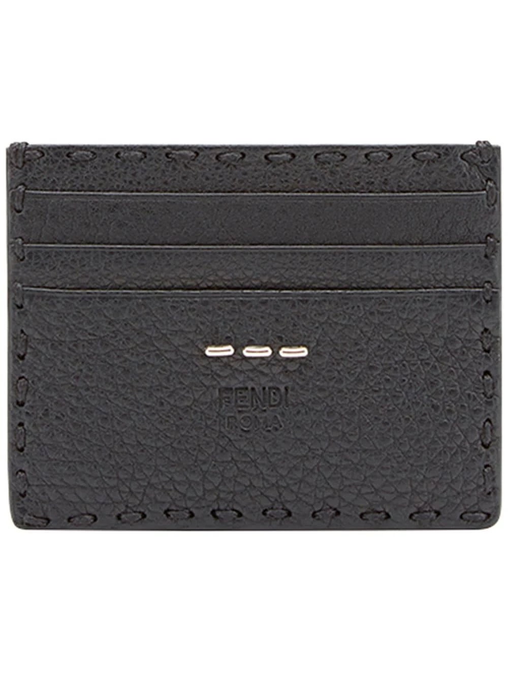 Founded in 1925 by Edoardo and Adele Fendi, fashion powerhouse Fendi is an Italian luxury brand that is undoubtedly famous for its premium leather goods and accessories. Part of the iconic SS18 collection, this Selleria 6-slot card holder is a brand staple. Crafted from black calf leather, this piece features six card slots, a front embossed logo stamp, a pebbled leather texture, a main internal compartment, an internal logo patch and front metal stitching details.