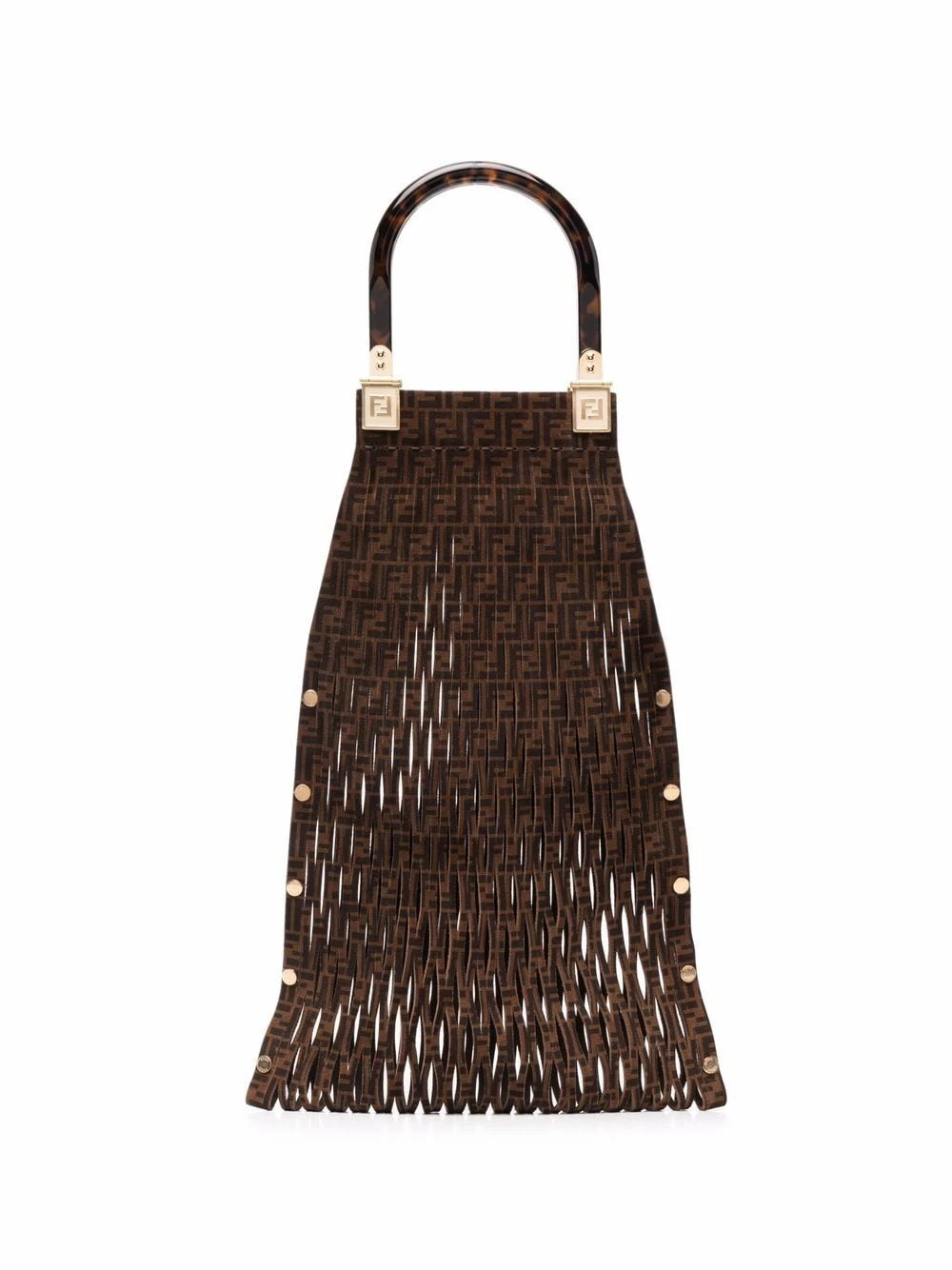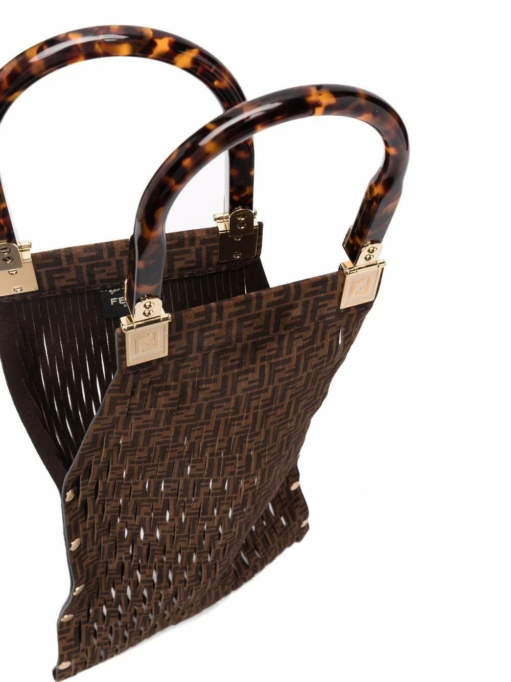 A symbol of typical Fendi refinement, the FF motif brings a distinctive finish to the Sunny tote bag. The brown-toned motif is complemented by cut-out detailing and carried by structured tortoiseshell handles for added practicality.Β