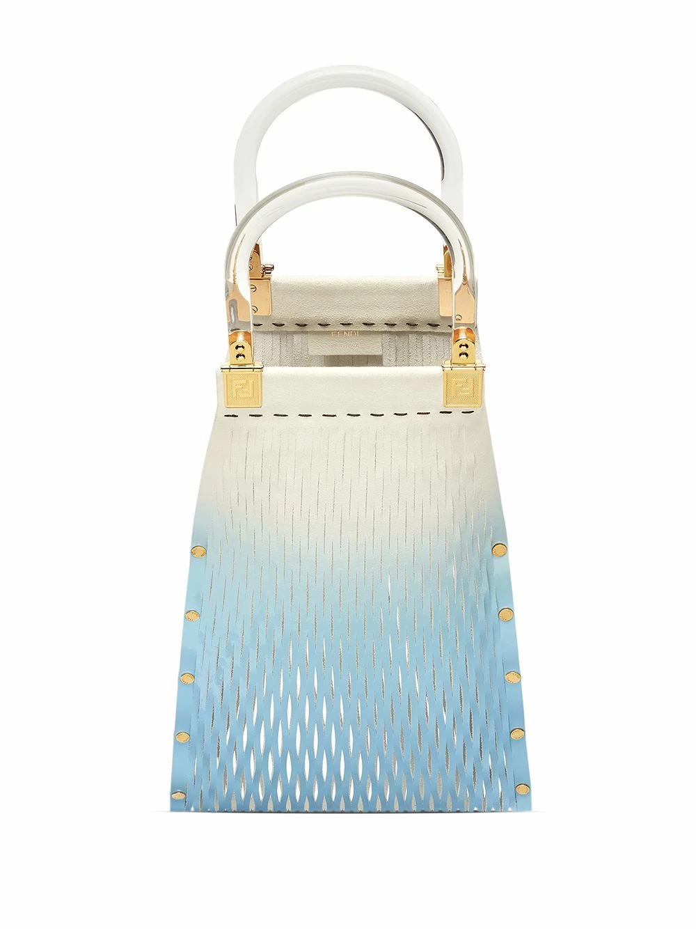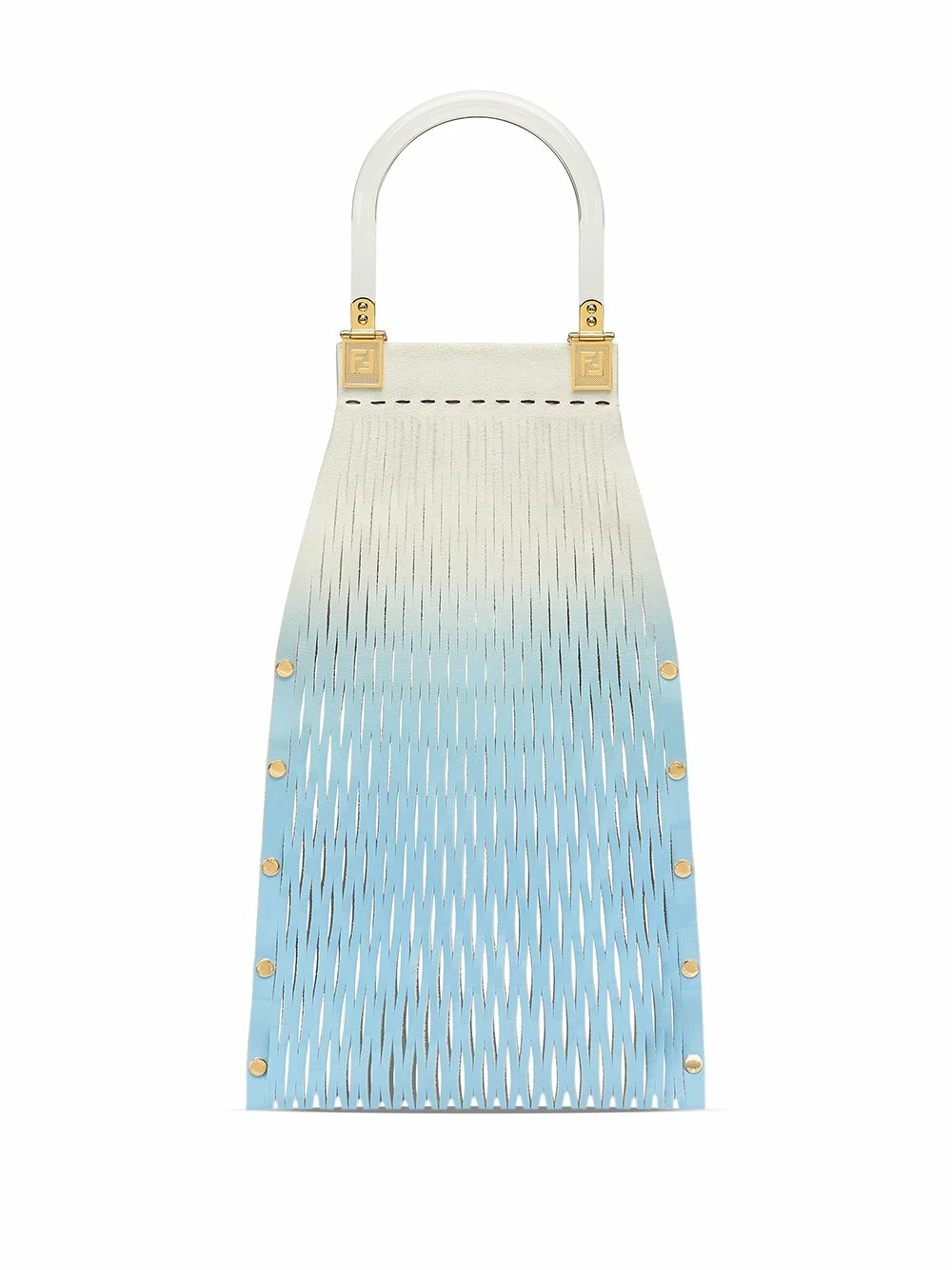 With a white and blue gradient effect, this Fendi bag resembles the sky on a sunny morning. Constructed from calf leather, this is the piece you need to bring the same kind of joy to your days. Shine on.