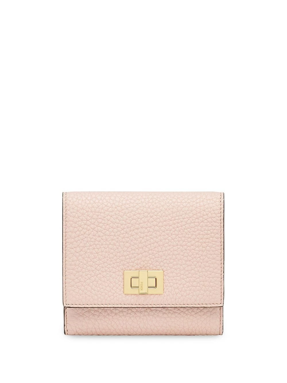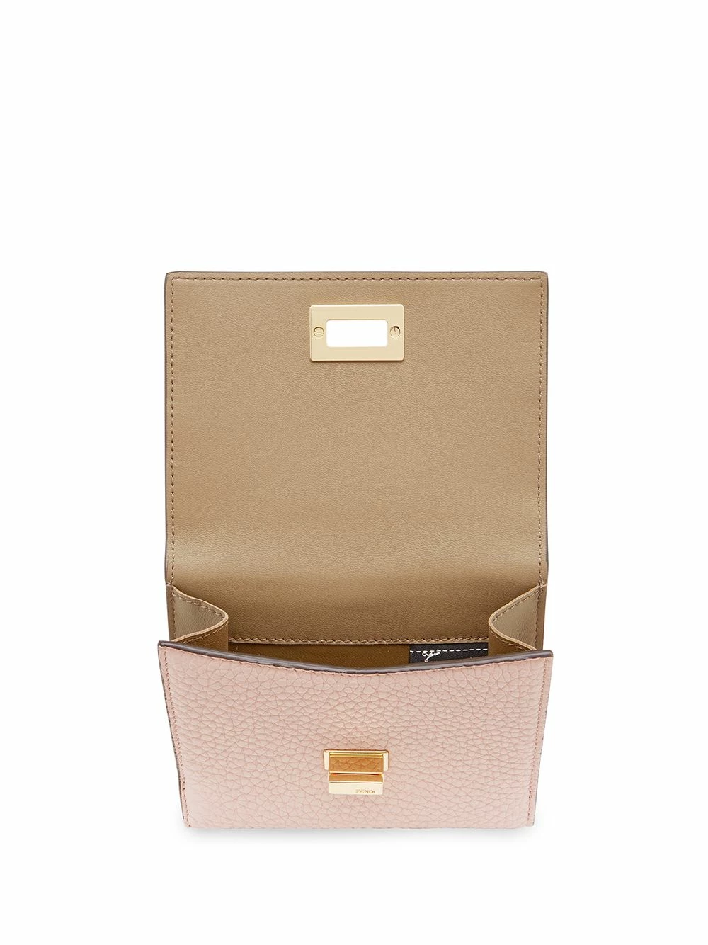 Practical never looked so pretty. Soft tones give this textured wallet a feminine appearance, and it’s one you’ll love. Satisfy your sweet tooth. Featuring a textured style, a front embossed logo stamp, foldover top with twist-lock closure, a press stud fastening and multiple card slots.