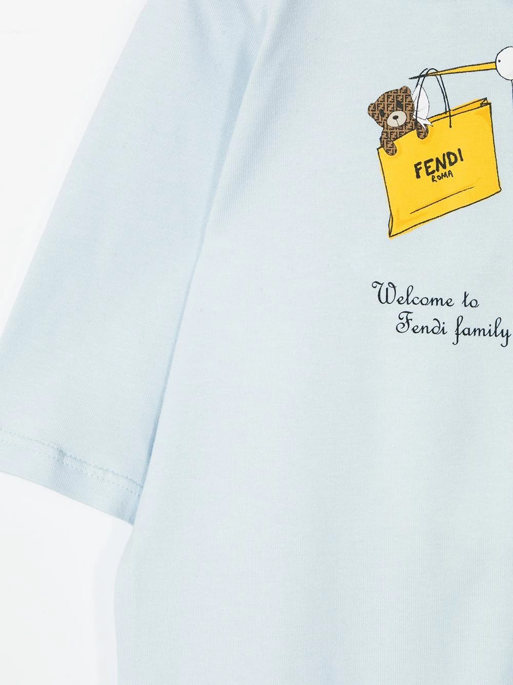 Keep your little one snug as a bug in this Fendi Kids family stork bodysuit. Crafted from soft cotton with a hint of stretch, you can be sure it will encourage a good night’s sleep. Sweet dreams.
