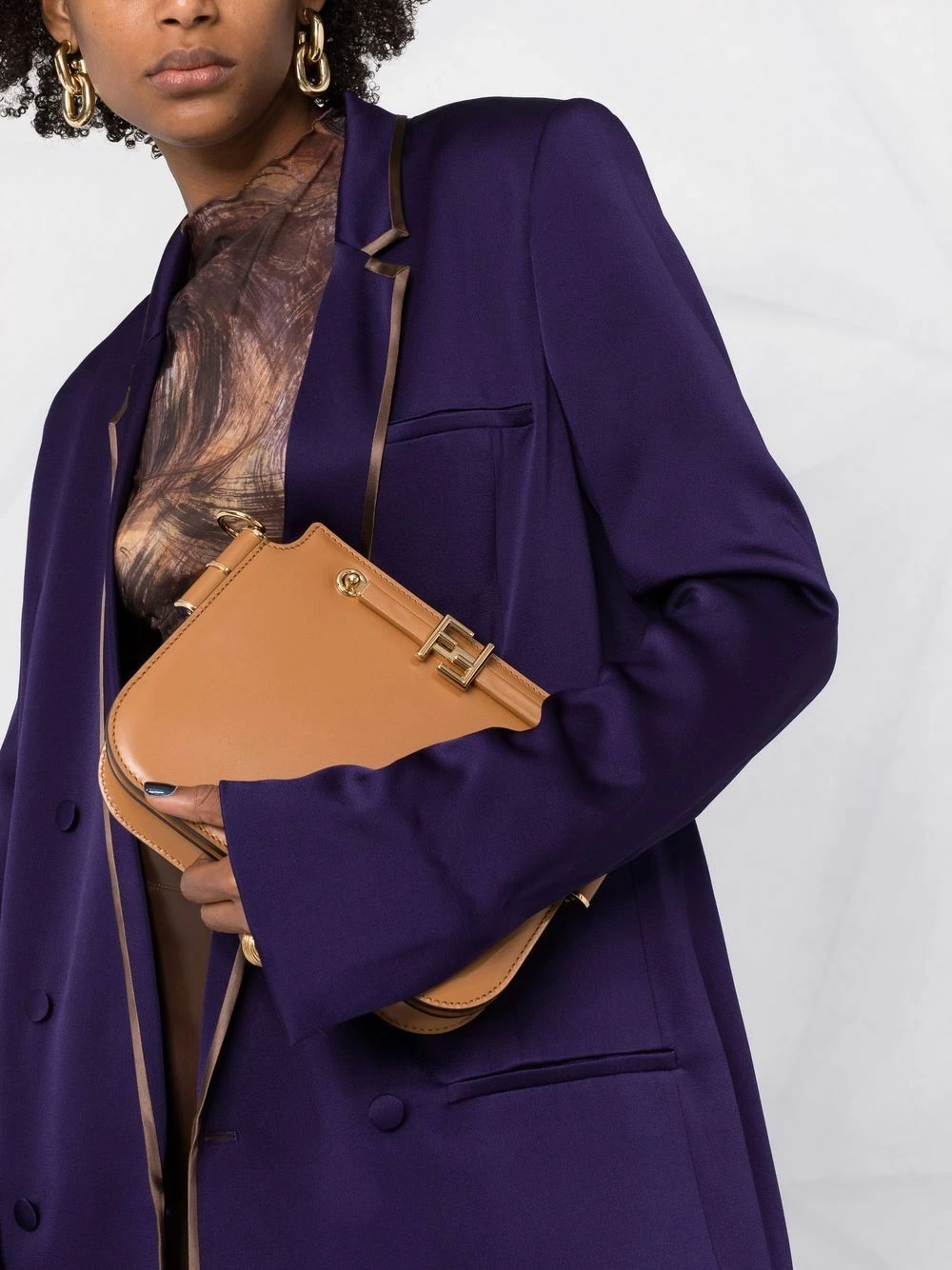 Fendi is an Italian luxury fashion house that stands for quality, tradition, and creativity. Made of brown leather and embellished with a metal FF clasp, this shoulder bag is a perfect example of the brand’s impeccable style.