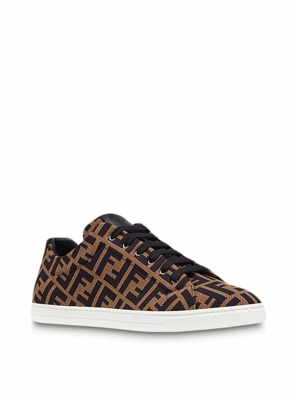 Get ready for Fendiβs logomania this season. From trendy chunky sneakers to colour-block sandals, the brand is all about making it functional and fashionable. These brown FF motif mesh lace-up sneakers from Fendi feature a branded insole, a lace-up front fastening, an almond toe, a mesh construction with FF motif print detailing and a contrast white sole.