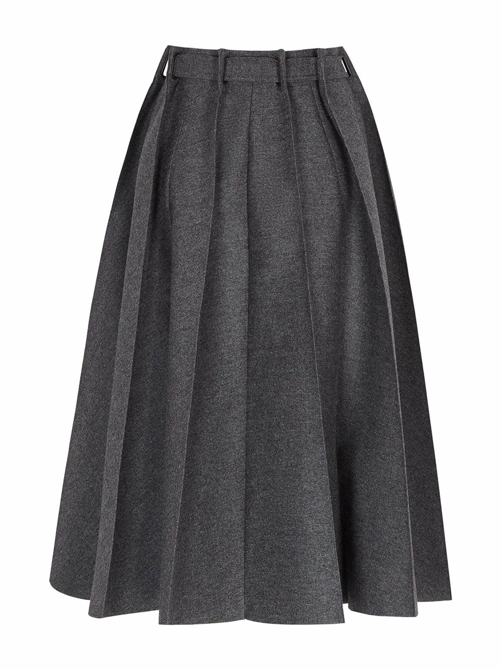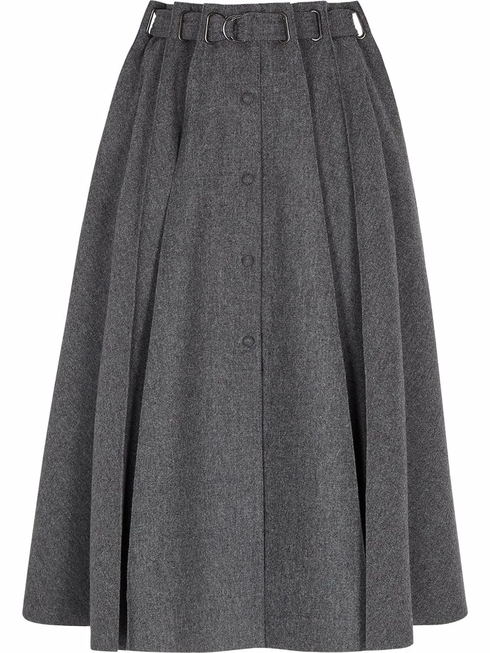 Do you miss your school days? Fendi’s grey melange pleated skirt is giving us major high school vibes and we are here for it.