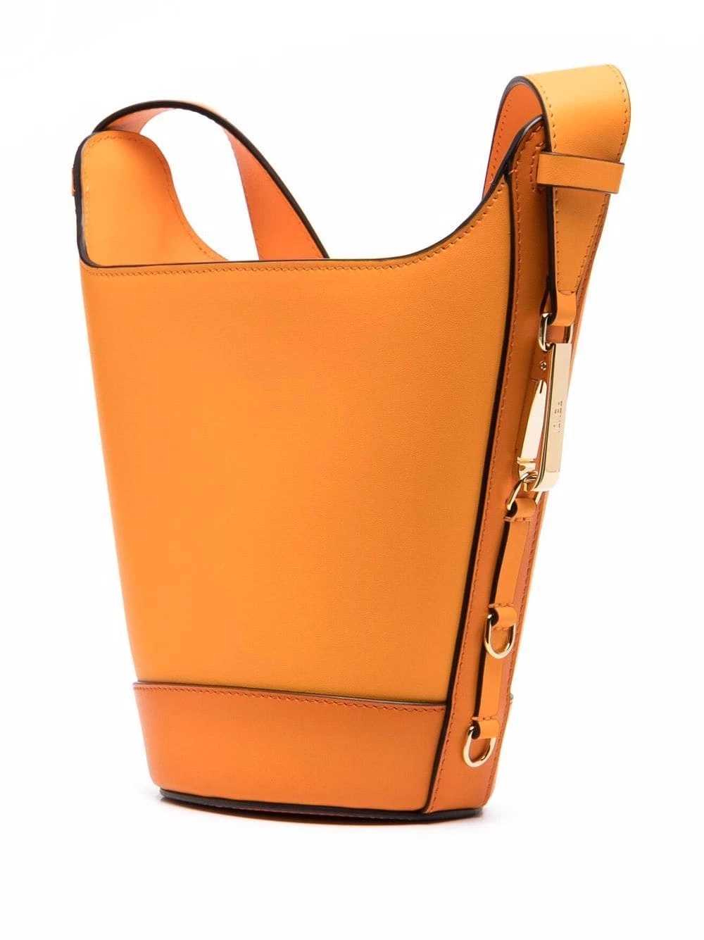 Debossed with a contemporary spray-paint style logo, this bucket bag marries Fendi’s present-day creative innovation with the House’s history of craftsmanship. Founded back in 1925, the Rome-born House continues to produce high-quality leather styles – note the cleverly concealed top flap closure – albeit experimenting with a logo or two along the way.