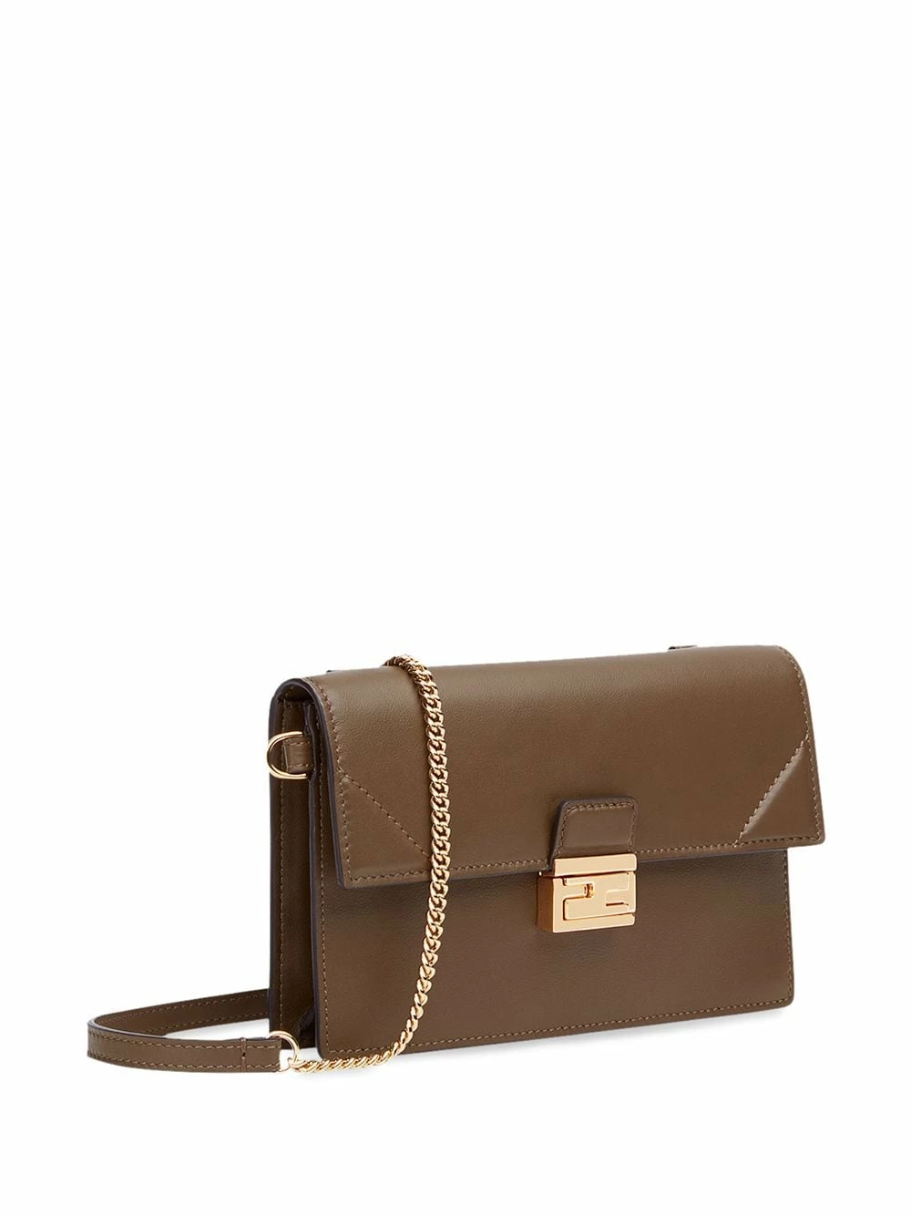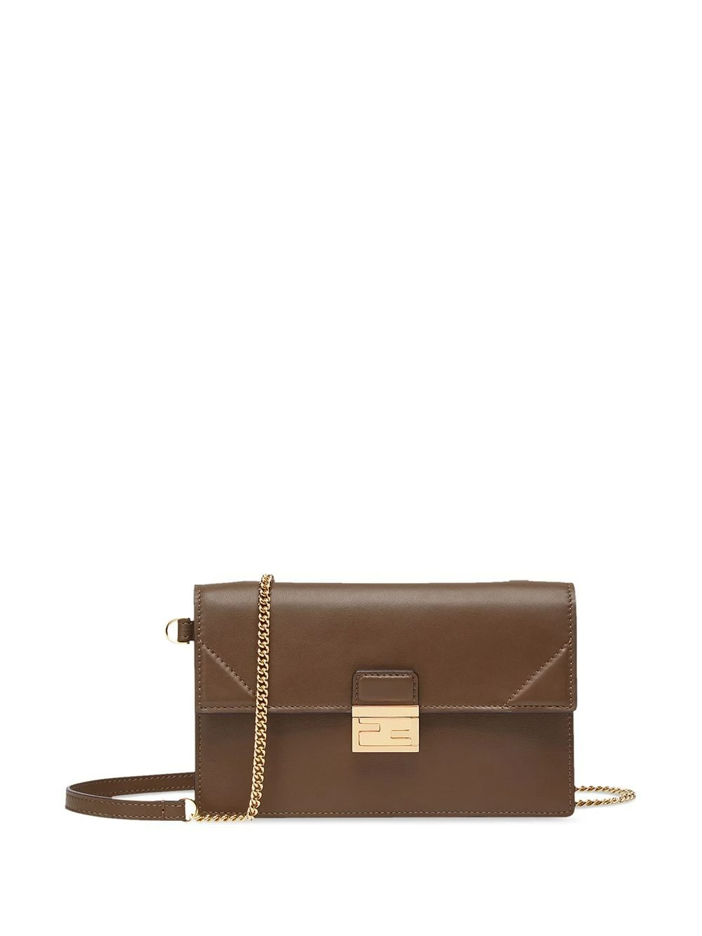 Sleek and simple, this brown leather Kan U wallet-on-chain bag from Fendi will be your new go-to for evenings out. Sling over your shoulder and act nonchalant. Featuring a chain and leather strap, a foldover top with magnetic closure, an internal zipped pocket and gold-tone hardware.