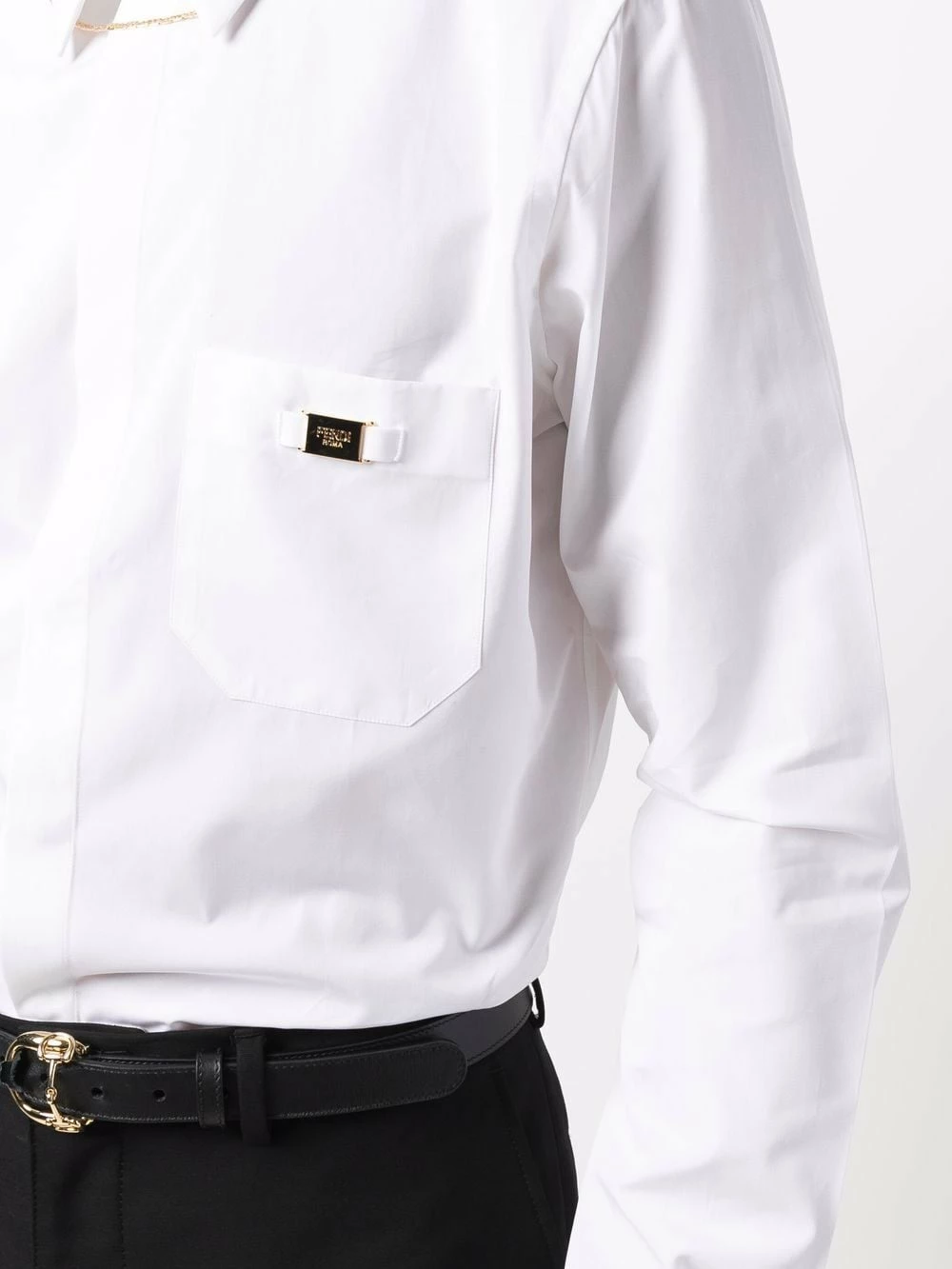 - gold-tone logo plaque
