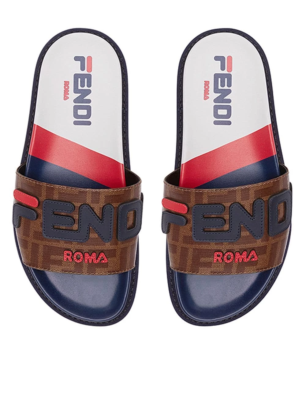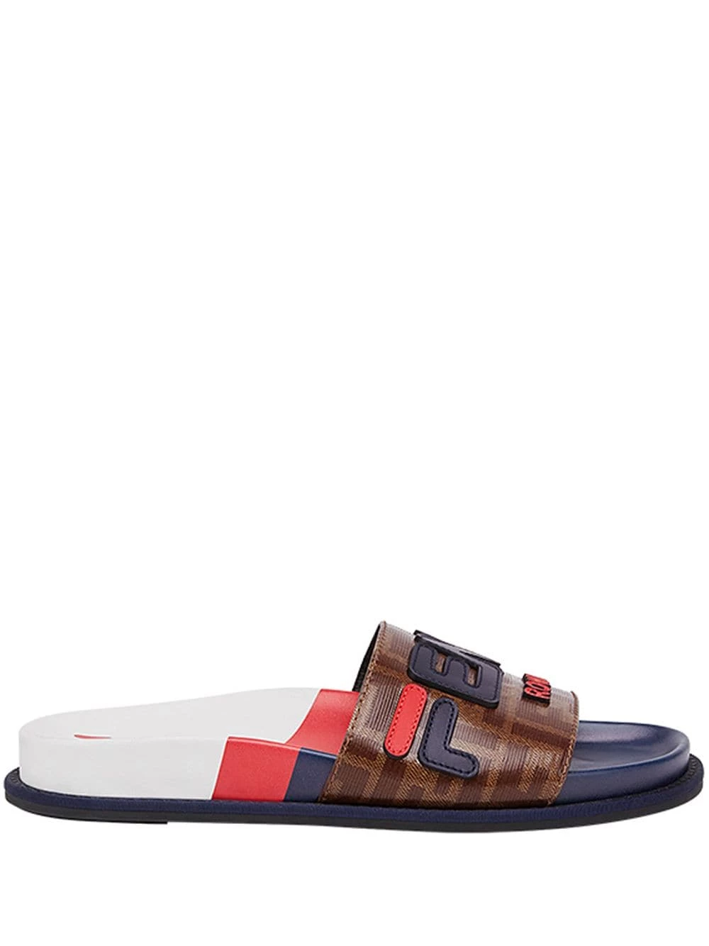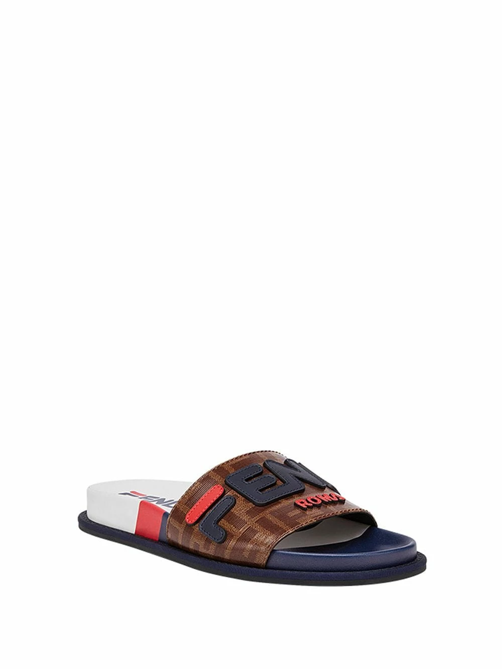 Fendi has always been a firm favourite of fashion insiders when it comes to impeccably manufactured shoes. This season the brand continues to reign supreme with colourful studs, fur logos, check patterns and eccentric embroideries. Crafted in Italy from multicoloured calf leather, these FF motif sliders from Fendi feature an open toe, Fendi Mania leather appliquΓ© detailing, a branded insole and a flat rubber sole.