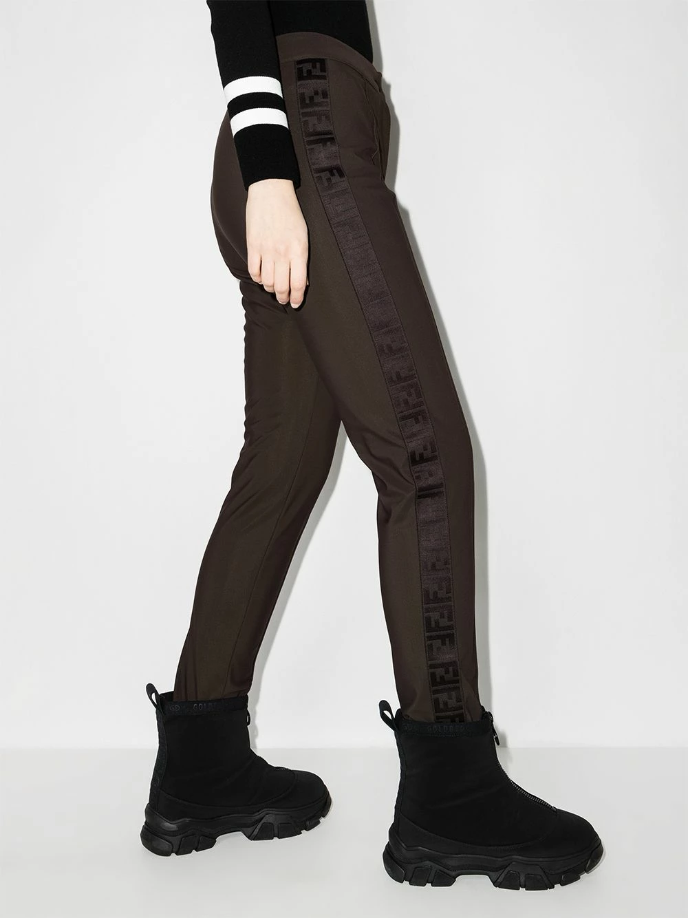 Merging branded details with function, Fendi introduces these ski bottoms. In a sleek all-brown colourway, the pair showcases a side logo tape covered with the label’s signature FF logo.