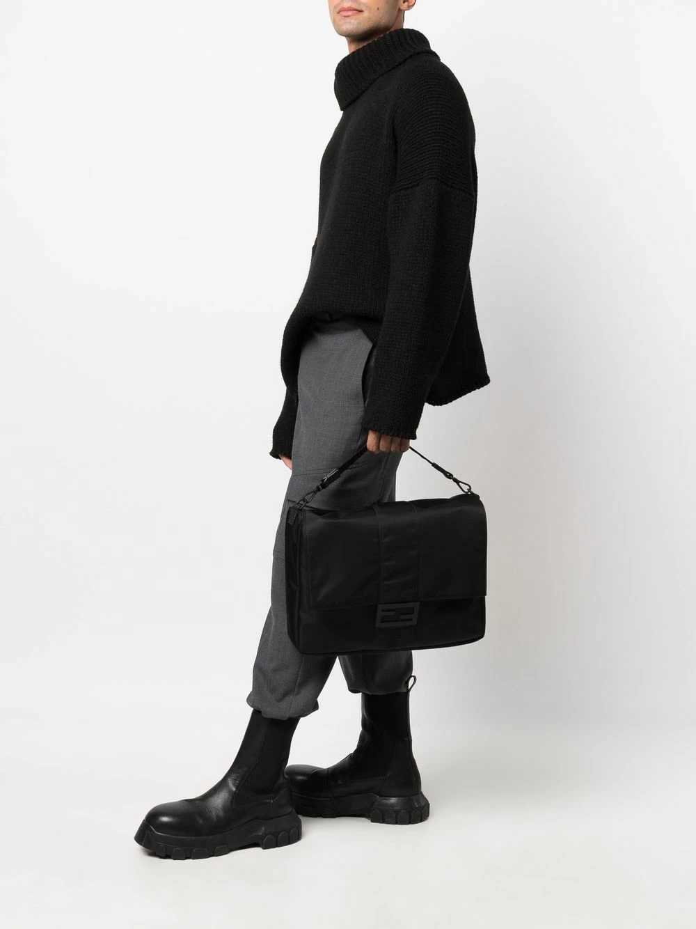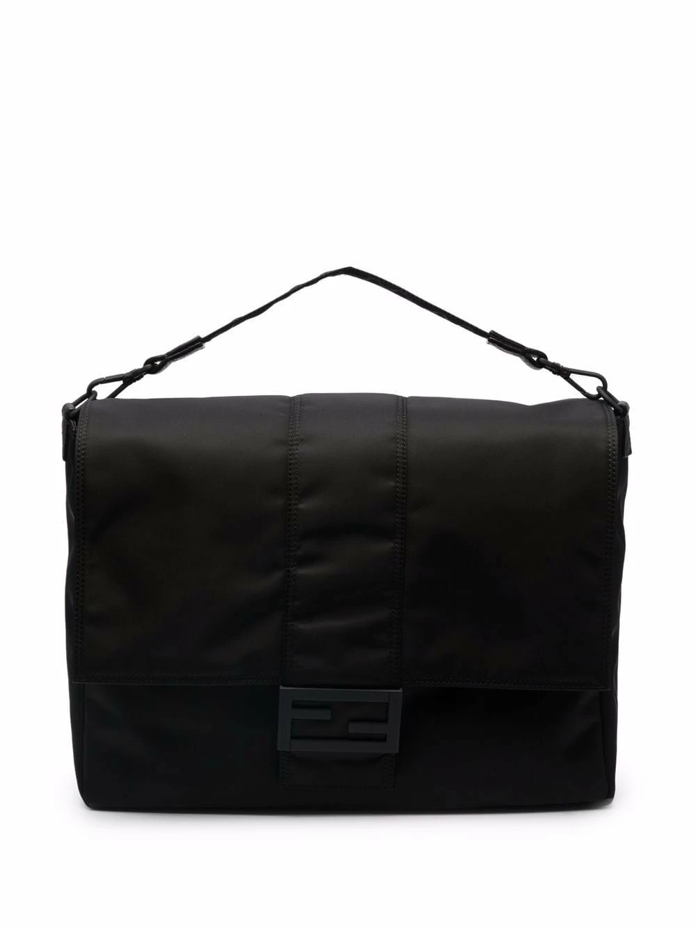 Made from ECONYL® nylon, this large Baguette messenger bag from Fendi combines sustainability with impeccable style. This practical bag is detailed with a tonal logo plaque on the front and opens up to a functional interior, with a zipped pocket and padded pocket for a laptop.