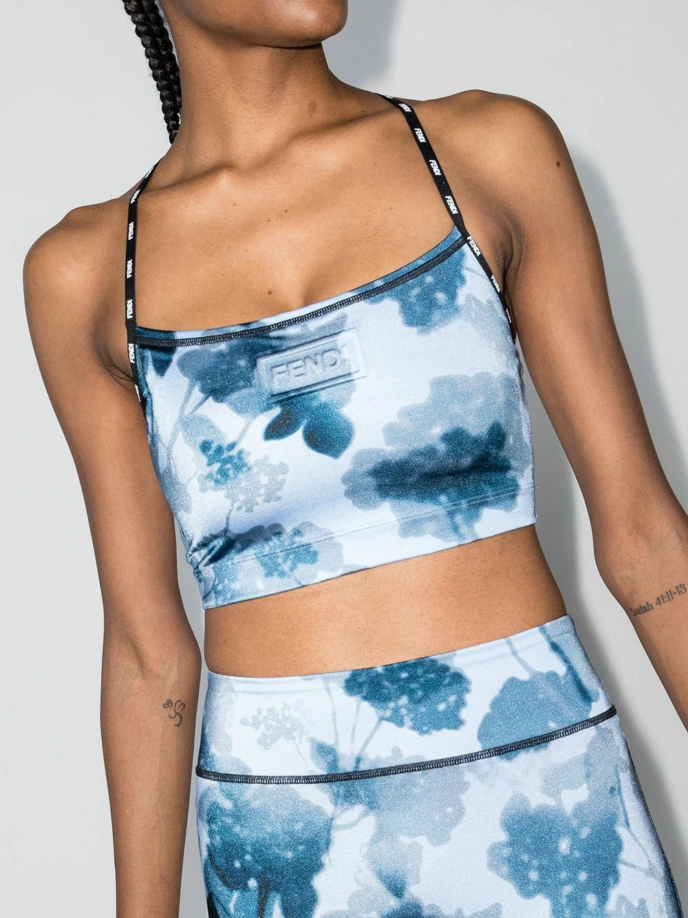 The Shady Flowers sports bra from Fendi is characterised by a floral print and branded shoulder straps. It features a stretch design that moves with its wearer’s body.