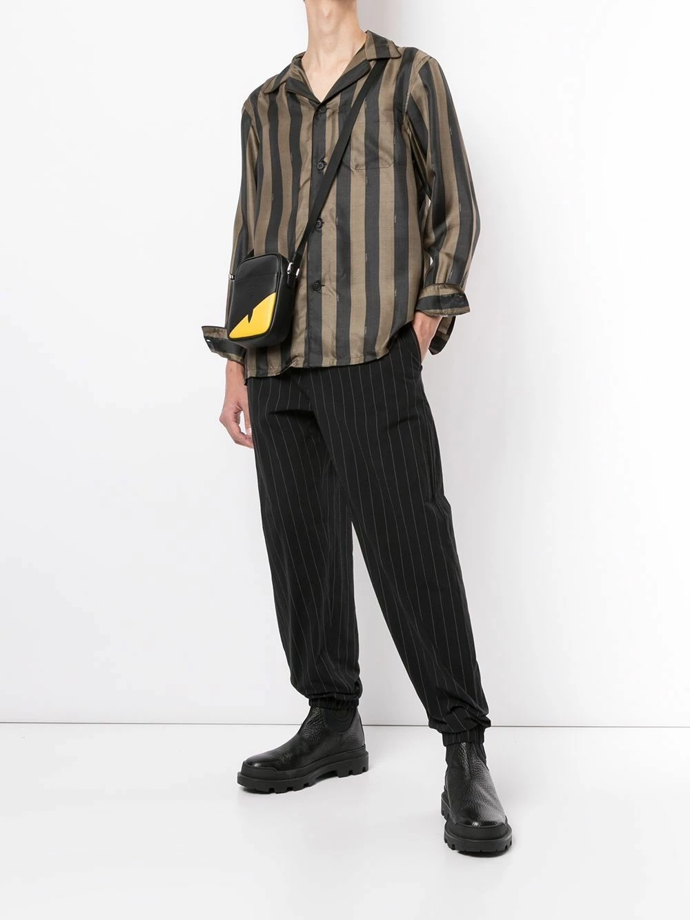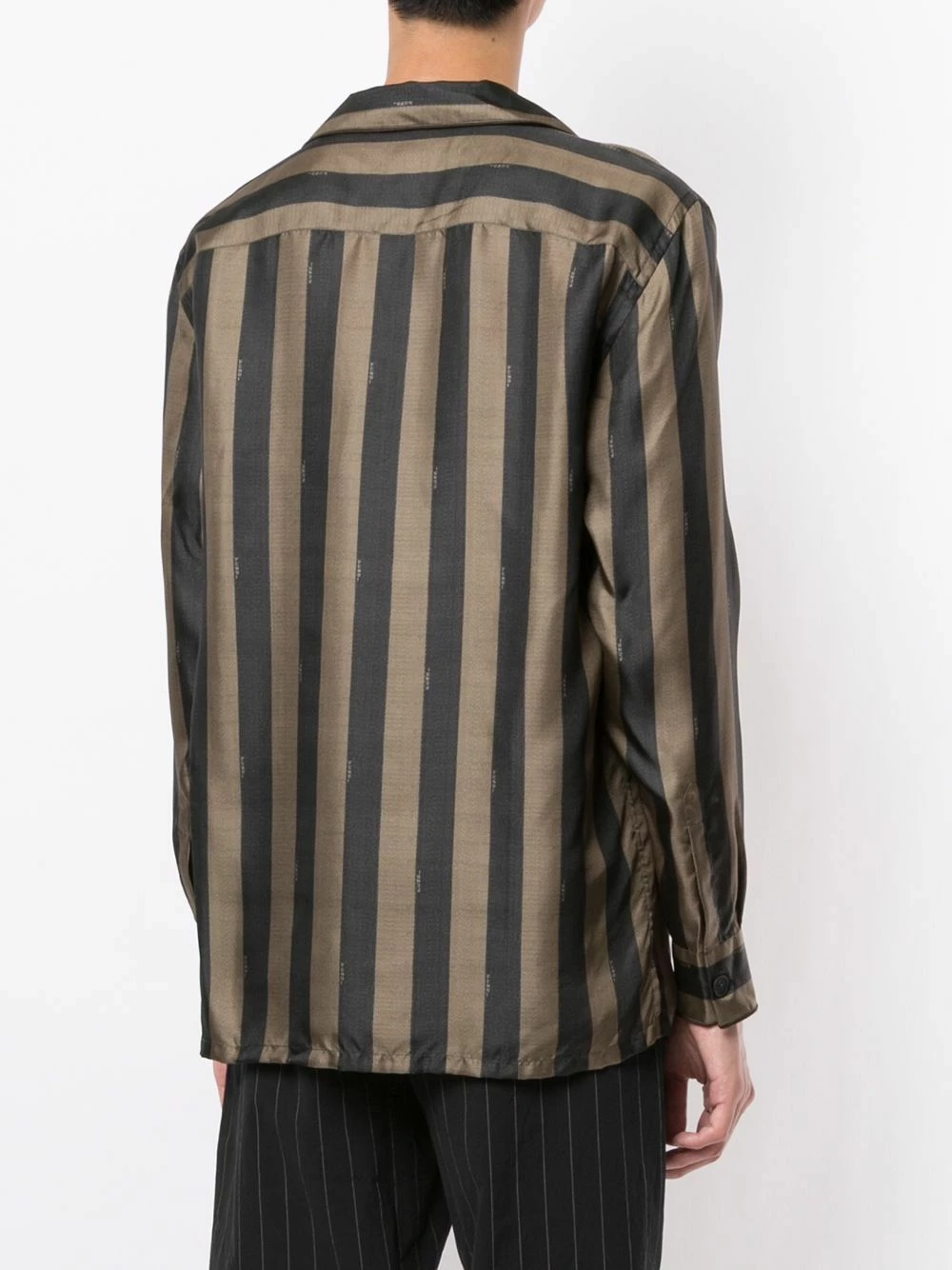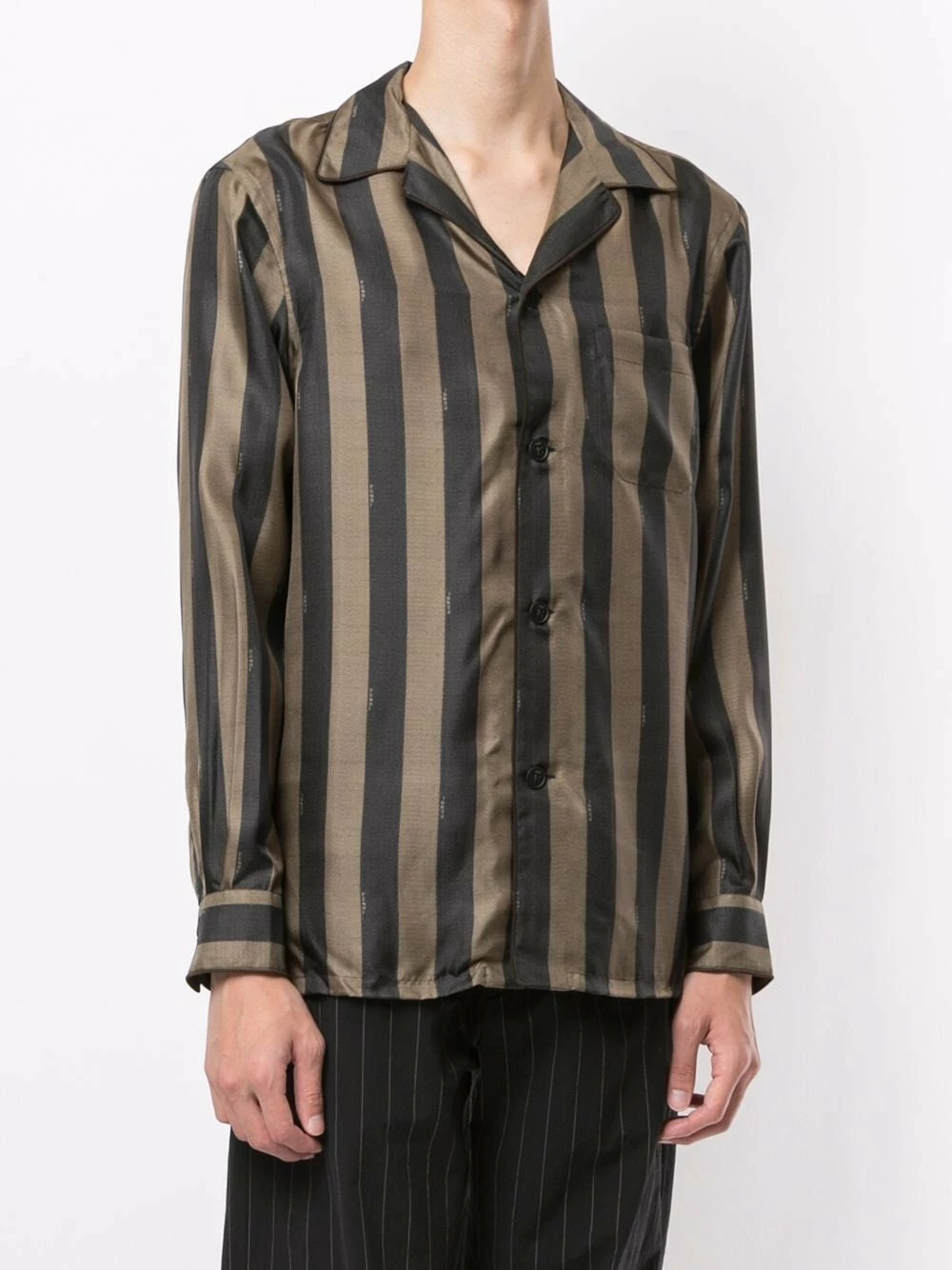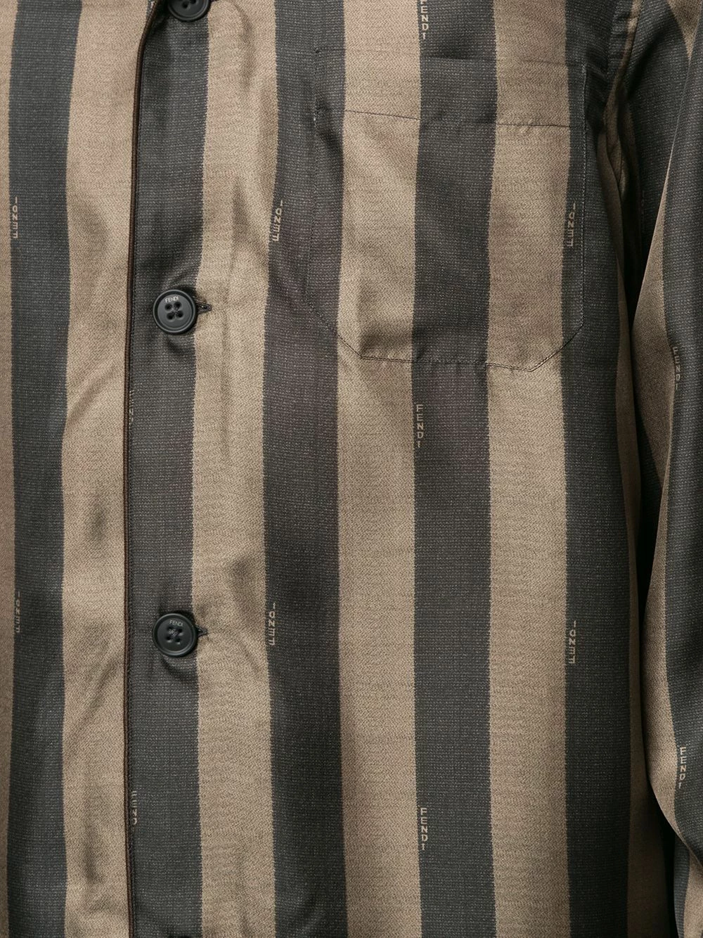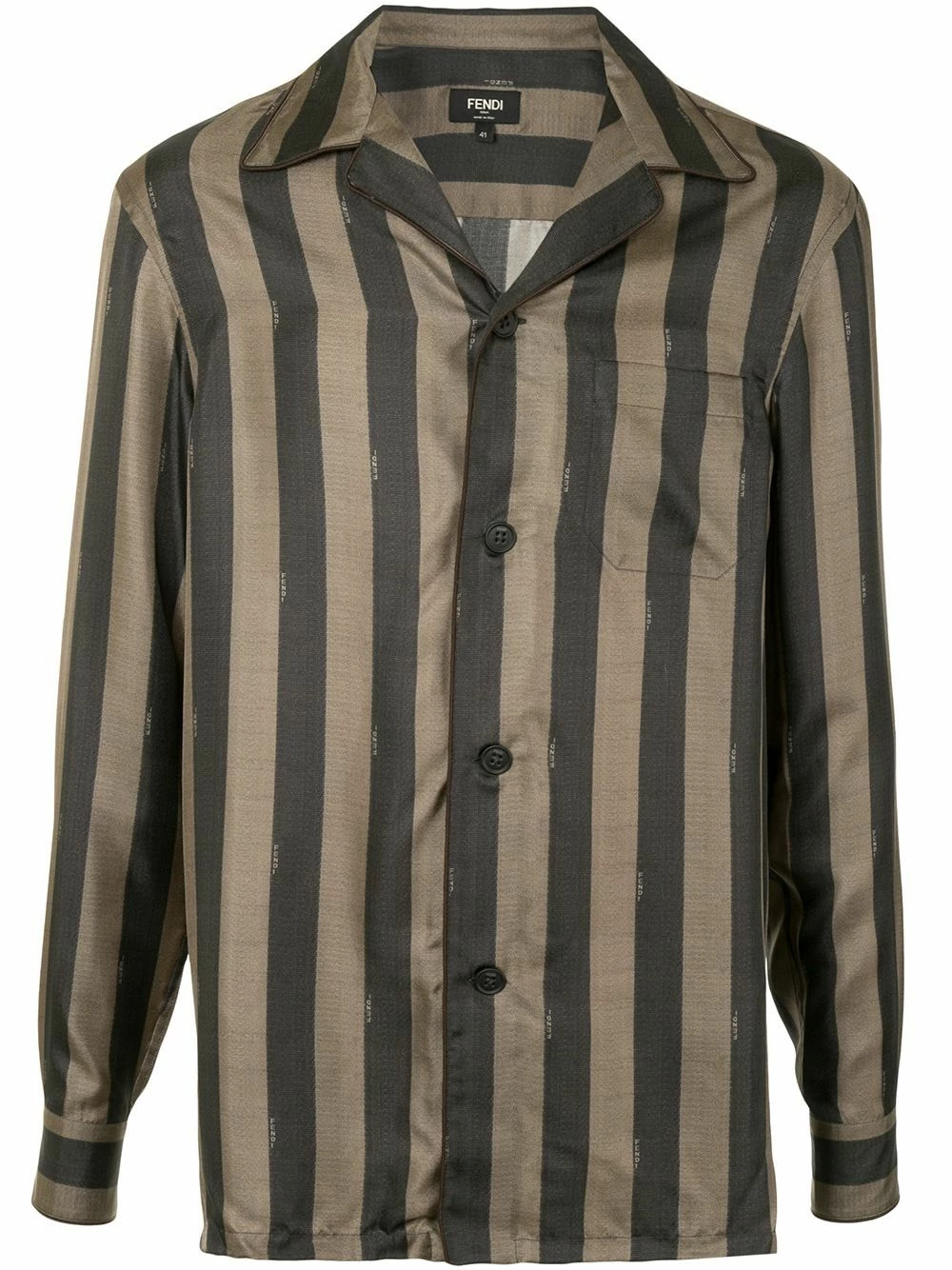 Never change your stripes, especially when they’re Fendi. This brown and black silk striped shirt makes a retro-inspired addition to your wardrobe. Button up.