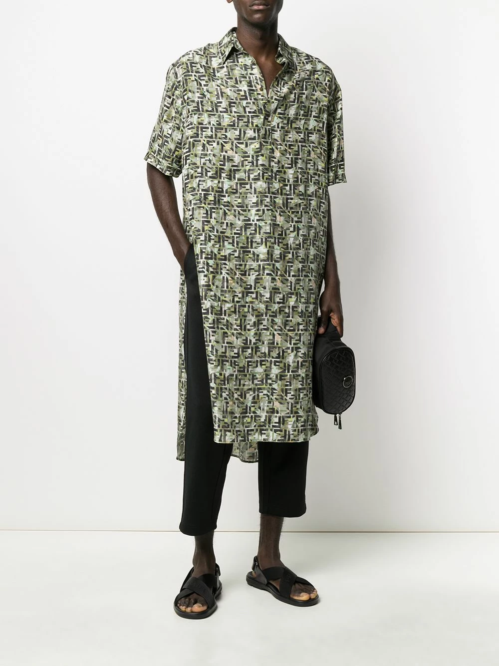 When something is this great, why not just make more of it? Made from silk, this shirt from Fendi has short sleeves, a classic collar, an allover logo pattern and a super oversized fit. More is more.
